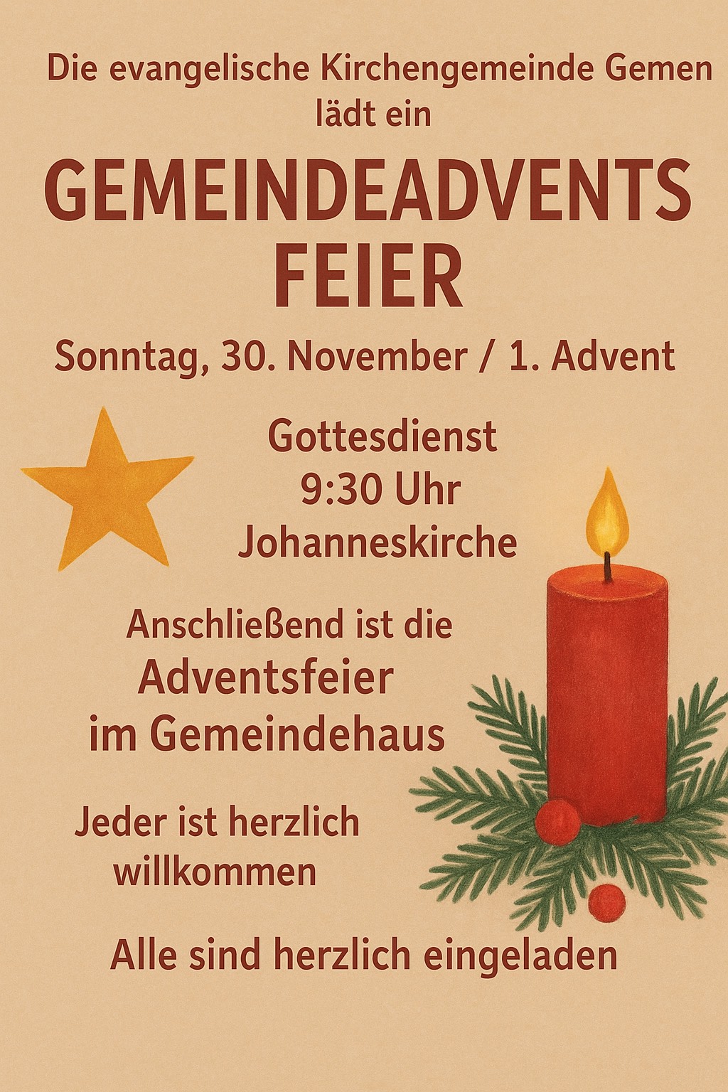 Gemen: Gottesdienste feiern wir an jedem Sonn- und Feiertag um 09:30 Uhr in der Johanneskrche